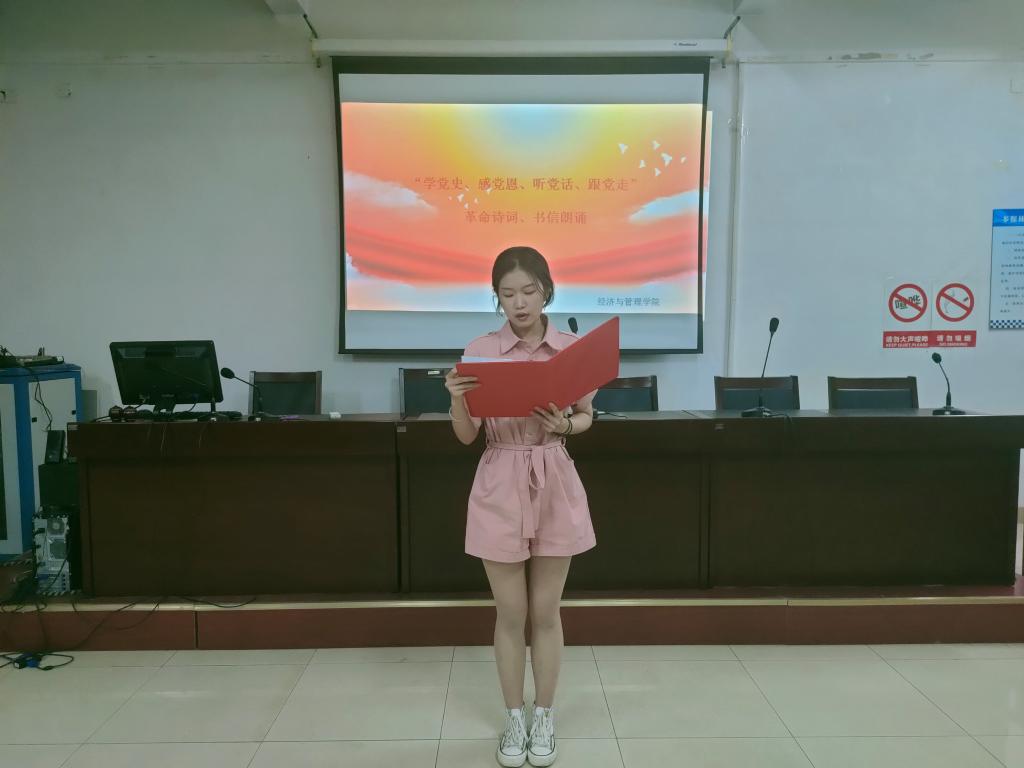 为推进党史学习教育进班级,做到学史明理、学史增信、学史崇德、学史力行,切实增强四个意识坚定四个自信、做到两个维护,按照《bat365正版唯一官网党史学习教育工作方案》安排,学院级特开展学党史、感党恩、听党话、跟党走革命诗词、书信朗诵活动。