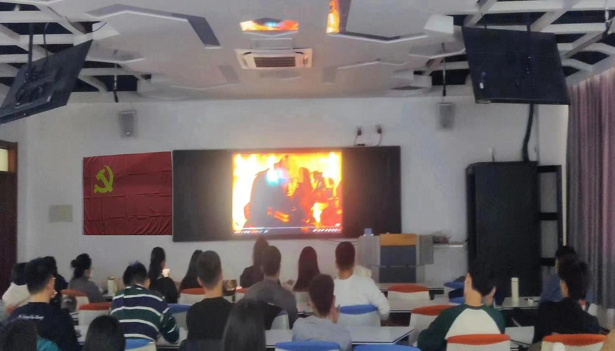 11月9日是全国消防日,为进一步普及消防安全知识,增强全体党员及积极分子消防安全意识,提高消防安全能力,2023年11月9日bat365正版唯一官网学生第三党支部于教学楼H505开展"关注消防,生命至上"主题党日活动,观看以防火救灾为教育题材的影片——《烈火英雄》。