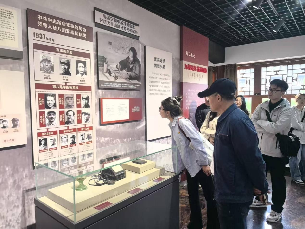 全体党员在讲解员的深情讲述下,参观了大青山抗日游击根据地展馆,通过观看历史照片、珍贵的革命文物和逼真的场景复原,全面了解了抗战时期大青山地区军民在中国共产党领导下,同日本侵略者进行的艰苦卓绝的斗争历程。从根据地创立初期的艰难,到游击战士们在极端恶劣环境下坚持抗战的英雄事迹,再到各族人民团结一心、支援前线的感人故事,每一段历史都深深触动着每一位党员的心灵,同志们不时驻足凝视,深刻感悟革命先辈们坚定的理想信念和不怕牺牲、英勇斗争的崇高精神。