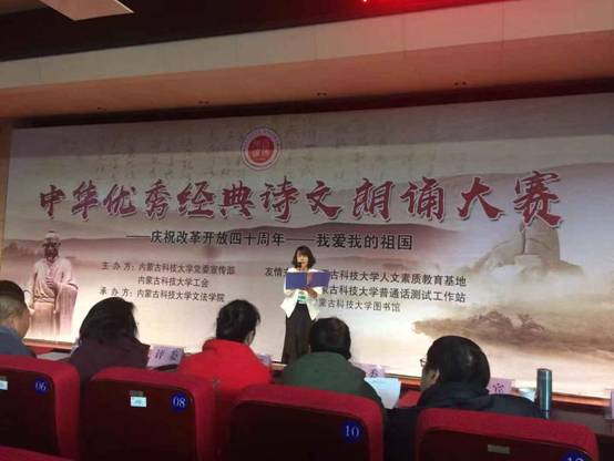 为庆祝改革开放40周年,深入挖掘中华优秀传统文化,切实提升广大教职工的思想水平和文明素养。1月4日下午,学校举办以“庆祝改革开放四十周年——我爱我的祖国”为主题的教工中华优秀经典诗文朗诵大赛。