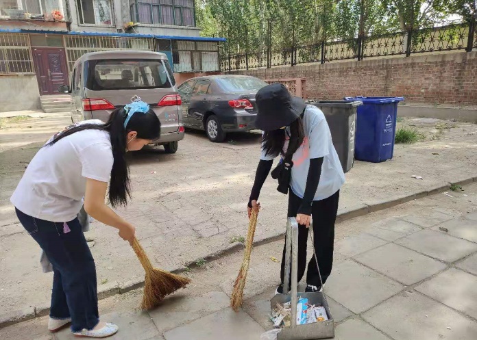 学生党支部秉承为人民服务的理念,切实把学习教育成果转化为“我为群众办实事”的实际行动,支部同学在阿尔丁社区党群中心领取了扫把、簸箕、垃圾捡拾器等工具,在党群中心工作人员的引导下,分多个小组对社区进行区域划分,各自清理美化各自的负责区域。