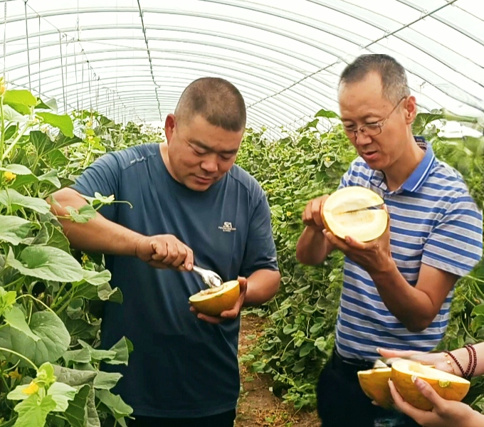 华莱士是磴口县的特色农产品,是当地的“金瓜瓜”。实践团成员走进华莱士瓜研究所的试验育种基地,实地观察华莱士瓜的生长情况。为了更好的打响华莱士这张名片,由当地政府牵头支持,不断通过提纯复壮、新品种选育及原良种繁育,全面提升华莱士品质。更多的毕业大学生选择回到家乡,继续扩大和发扬家乡的“甜蜜事业”。