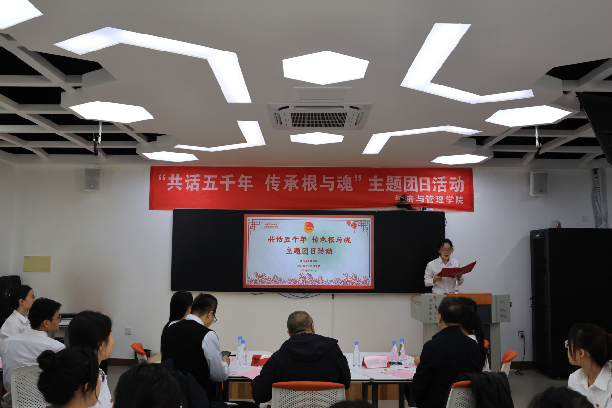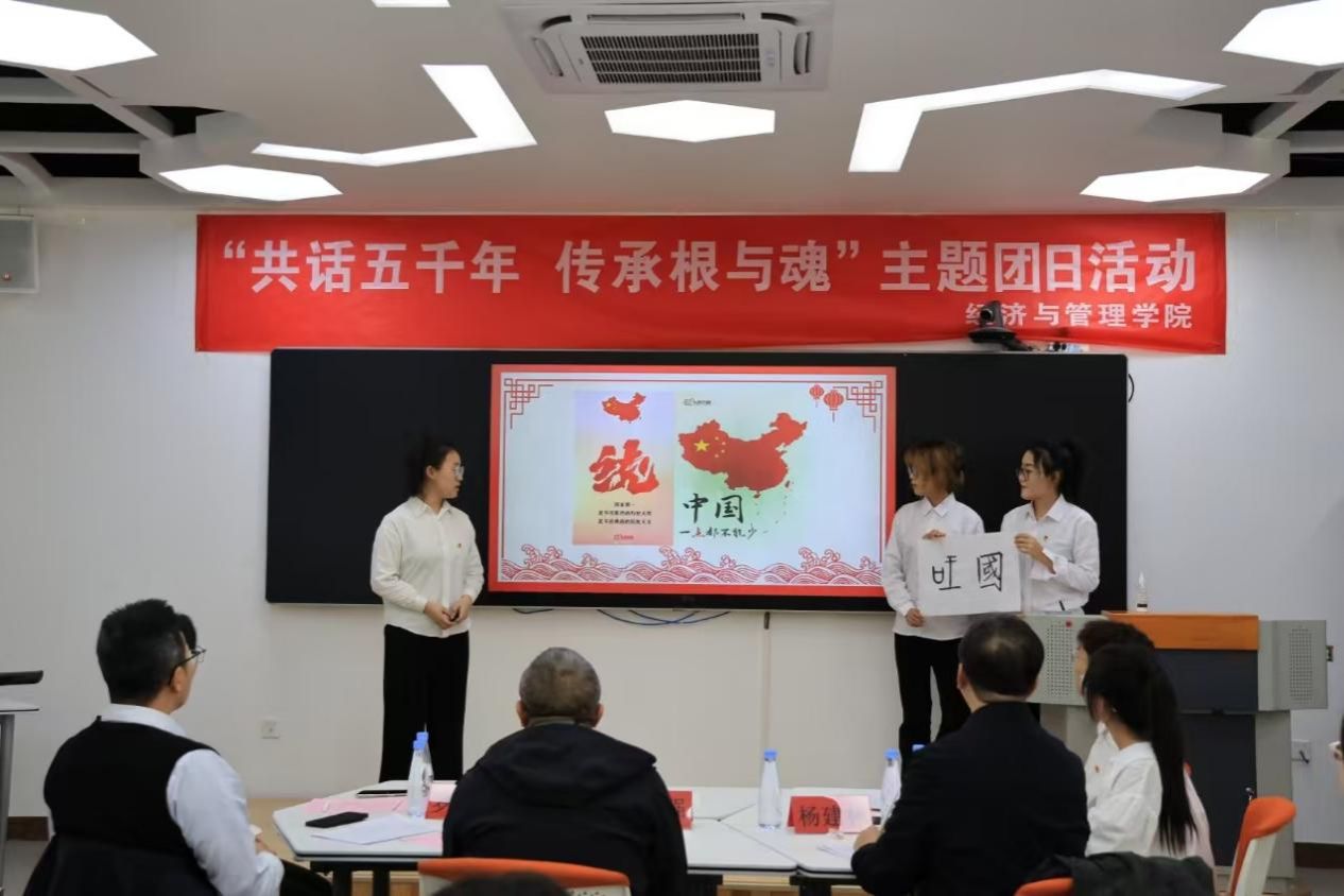 为深入学习贯彻习近平文化思想,贯彻落实好《习近平与大学生朋友们》的学习宣传工作,组织动员团员青年加深对中华优秀传统文化的传承发展,引导团员青年深刻理解“两个结合”的重大意义。11 月 7 日由校团委主办,bat365正版唯一官网承办,2023级会计学专业团支部开展了“共话五千年 传承根与魂”示范主题团日活动。校党委副书记杨建林、校团委书记罗强、bat365正版唯一官网书记张永强出席此次活动。