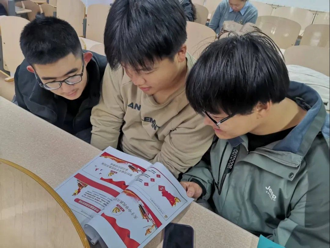 活动伊始,全体团员通过视频学习的方式系统深入了解我国统一多民族国家的基本国情,系统了解各民族交往交流交融的历史进程。随后,团支书围绕“共话五千年,传承根与魂”开展主题分享,结合民族交往融合的历史故事,从历史渊源、文化融合到新时代民族工作重点,生动阐释中华民族多元一体格局的深刻内涵,引导同学们树立正确的国家观、民族观、文化观。此外,现场设置了体验环节,团员们在沉浸式体验中,感受中华文化的厚重底蕴与多样性,体悟了“各美其美,美美与共”的底色。