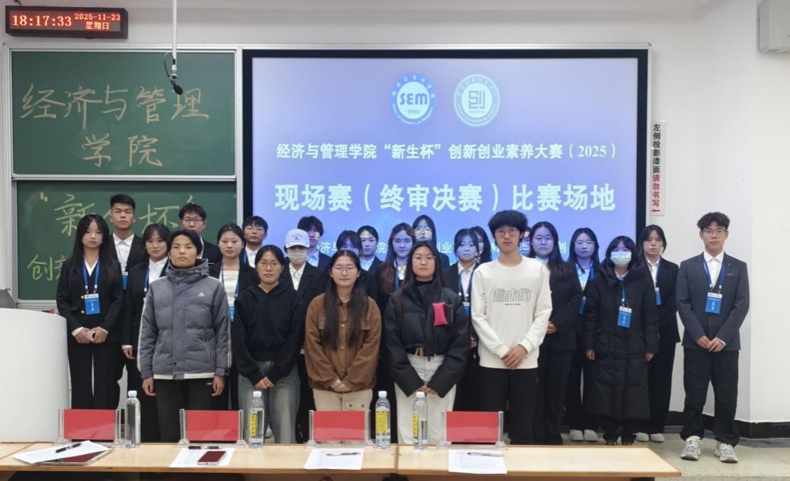 历经一个多月的精心筹备与严格选拔,大赛于11月中旬顺利完成通讯评审,共有18支优秀团队脱颖而出,成功晋级决赛。决赛现场,各团队通过路演展示与现场答辩,系统呈现了项目创意、商业模式及团队协作能力。同学们自信从容的陈述与逻辑清晰的应答,赢得了现场评委的一致肯定,展现出2025级经管学子扎实的综合素养与昂扬的青春风貌。