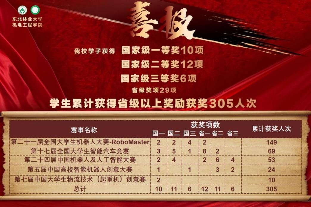 礼赞七秩东林,创新人才培养。值此学校建校70周年之际,东林学子用优异的学科竞赛成绩为母校70华诞献礼。今年暑期,我校学子先后在全国大学生机器人大赛(RoboMaster机甲大师赛)、全国大学生智能汽车竞赛、中国机器人及人工智能大赛、中国高校智能机器人创意大赛、中国大学生起重机创意赛五项学科竞赛中获得国家级奖励27项,其中,全国一等奖10项、全国二等奖11项、全国三等奖6项和省级奖项29项,学生累计获得省级以上奖励获奖305人次。全国大学生智能汽车竞赛入围总决赛队伍数量位居全国第5位、全国大学生机器人大赛(RoboMaster机甲大师赛)位居全国26强。