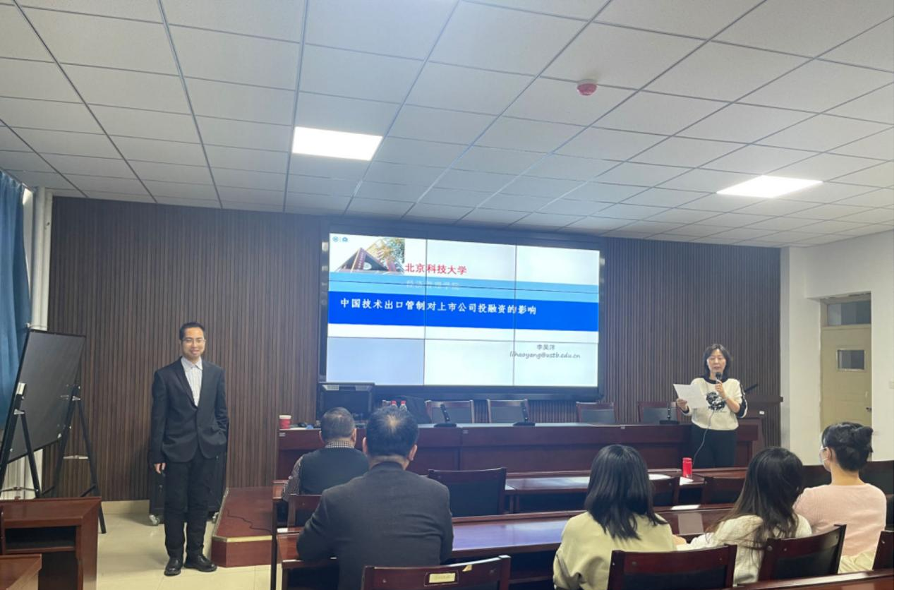 为营造优良学术氛围、夯实学生科研能力,bat365正版唯一官网于2023年12月15日下午2点30分举行第8期“经管讲堂”以“中国技术出口管制对上市公司投融资的影响”为主题的学术讲座,本次讲座由北京科技大学经济管理学院财务与会计系副教授、MPAcc项目负责人李昊洋老师主讲,经管学院MPAcc硕士点负责人魏曙光教授主持。参与本次讲座的有赵周华教授、郝婷副教授等经管学院老师以及全体会计硕士研究生。