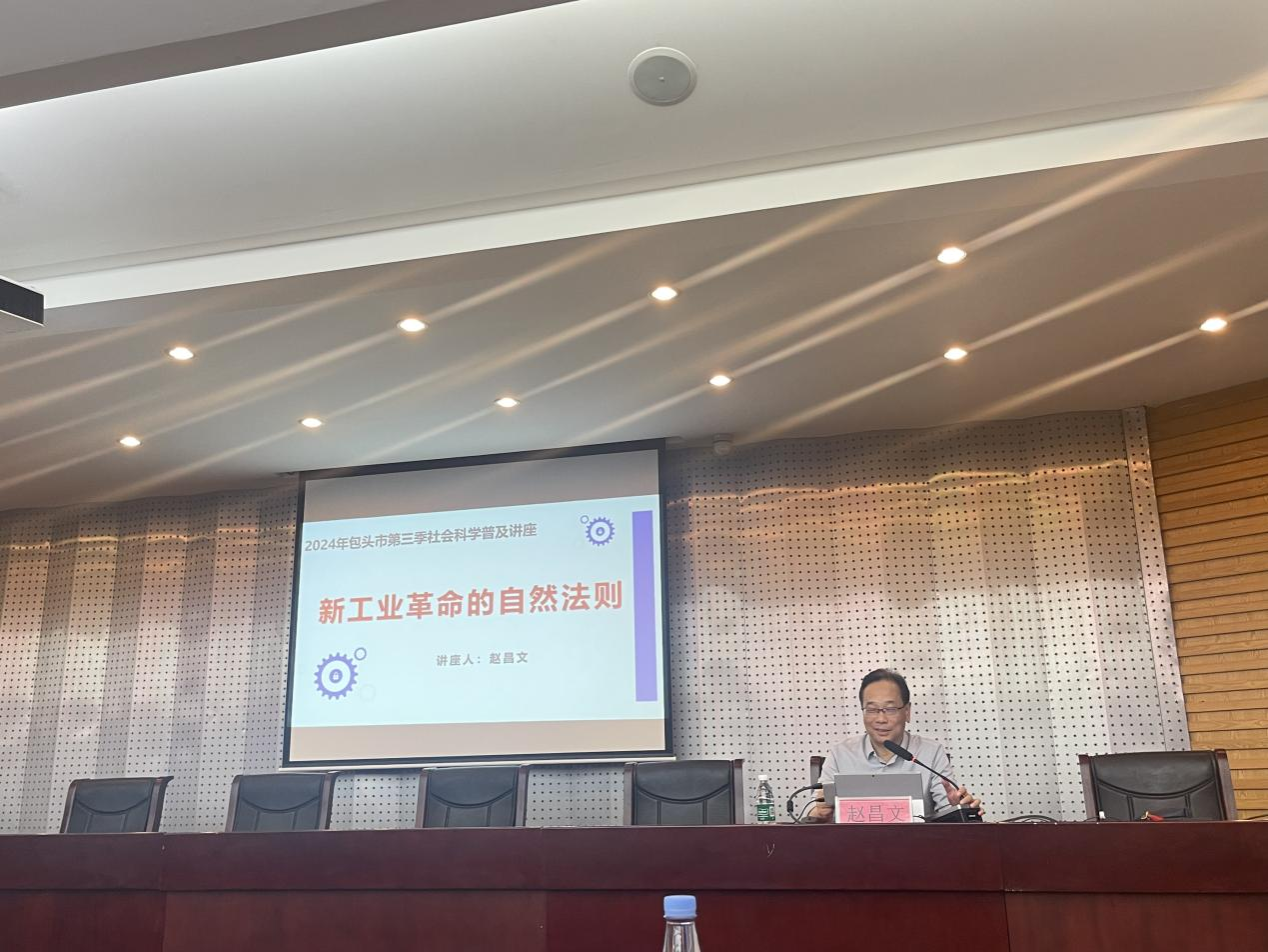 6月27日,bat365官网邀请北京市社科联副主席,中山大学吴小兰讲席教授,岭南学院教授、博士生导师,中山大学国家发展研究院院长赵昌文教授,以《新工业革命的自然法则》为题作专题讲座。包头市社科联党组书记、主席、市社科院院长梁义光主持。北京市社科联、自治区社科联、包头市社科联及bat365官网师生共计150余人参加本次讲座。