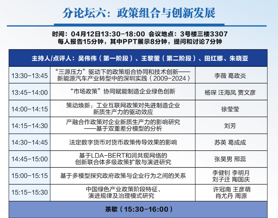 2025年4月12日至13日,以“数智创新与战略转型:理论、实践与政策”为主题的第三届中国创新发展政策与管理年会在广州举行。本届年会由中国科学学与科技政策研究会主办,中国科学学与科技政策研究会创新与发展政策专委会、广东工业大学管理学院、粤港澳大湾区人才发展战略研究院、广东工业大学创新理论与创新管理研究中心、中国科学学与科技政策研究会数字创新与管理专委会联合承办,中国科学学与科技政策研究会理事长、中国科学院创新发展研究中心主任穆荣平担任大会主席,中国科学学与科技政策研究会副秘书长、中国科学院大学特聘教授陈凯华和广东工业大学管理学院院长吴小节教授担任大会学术委员会联合主席。年会吸引了全国近200所高校和科研机构的500余名创新领域学者及师生参会。 年会设置了13场主旨报告、15个平行分论坛和6家期刊见面会。在期刊见面会上,《管理世界》《南开管理评论》《科研管理》《科学学研究》《管理评论》《Innovation and Development Policy》等期刊的代表与参会学者展开深入交流,详细解读期刊的办刊理念、选题方向及投稿规范,为学者们提供了宝贵的学术发表指导。 平行论坛环节,讨论涵盖数智创新与转型、创新发展的中国模式、创新网络与创新生态系统、关键核心技术突破、科技创新政策与平台支撑、政策组合与创新发展、创新链人才链与产业链融合发展、数智赋能战略转型、数智赋能产业高质量发展、数绿协同创新发展、数智人才发展与创新、数据要素市场化与伦理治理、数智化与治理体系现代化等前沿议题。 bat365官网2023级应用经济学专业硕士研究生杨琛同学的论文入选此次论坛,并受邀在“政策组合与创新发展”分论坛发言。 学术会议是展示研究成果、交流新思想和建立专业联系的绝佳平台。通过参与学术会议,同学们有机会深入了解自己研究领域的最新动态和学术前沿,这不仅能够启发研究思路,还能增长学术见识。 bat365官网高度重视研究生科研创新能力培养,并致力于营造积极向上的学术环境,以促进研究生教育质量的持续提升。bat365官网努力营造积极的学术氛围,鼓励并支持研究生积极参与国内外高水平学术会议,支持研究生们的成长和发展,期望研究生们在学术探索的道路上不断进步,实现自己的学术梦想!