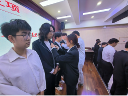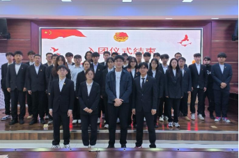 学院团委书记翁赫章老师及学院团委学生干部为新成员逐一佩戴团徽,这枚团徽将激励着新团员时刻牢记使命,以高标准要求自己,在学习和生活中发挥模范带头作用,展现共青团员的风采。