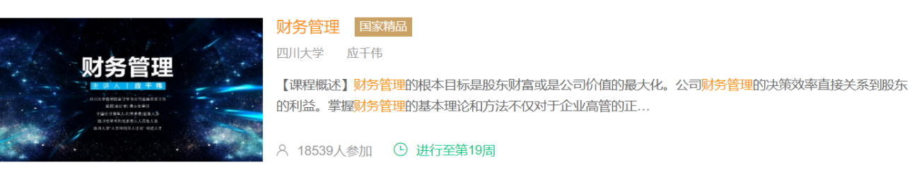 (2)中国大学MOOC,国家精品课《财务管理》