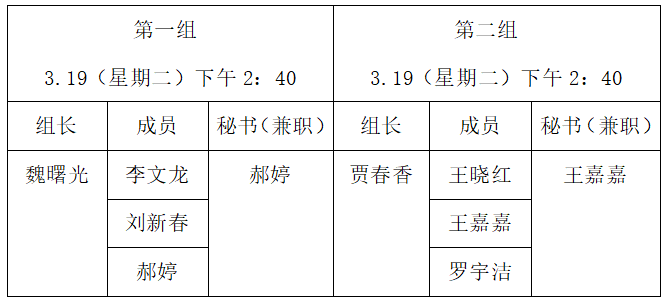 一、时间:2024年3月19日(星期二)下午,具体见表格中安排。
