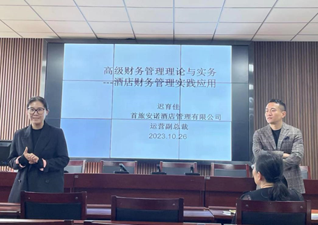 本次讲座有幸邀请到了首旅安诺酒店管理有限公司运营副总裁迟育佳,讲座由bat365官网工商管理系主任郝婷主持,参加本次讲座的还有苏利平教授、王晓红副教授、张芳卿副教授、昝玉文和尚丽花等教师以及2023级会计专硕研究生。